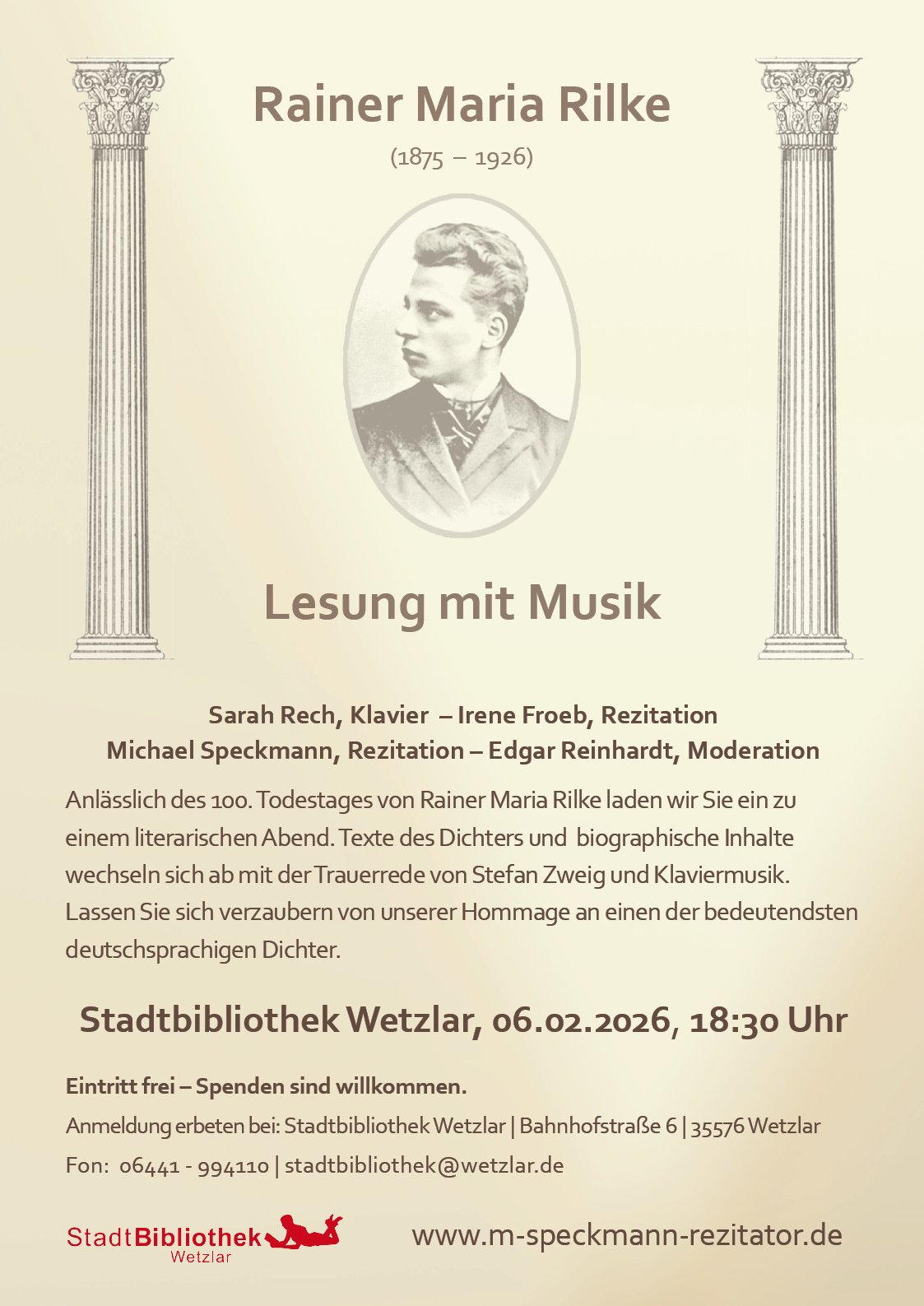 Michael Speckmann ist ein Gärtner mit einem besonderen Faible für Sprache. Er genießt es, durch die Landschaften der Dichter und Denker zu flanieren und deren Blüten und Früchte seinem Publikum darbieten zu dürfen. Vor allem der klassischen Dichtkunst zugewandt, rezitiert er auch die moderne Kurzgeschichte. Er „erfühlt“ die Texte, um Sie in einer lebendigen Präsentation mit klarer Diktion, gerne mit klassischer Musik verbunden, erlebnisfähig zu machen.